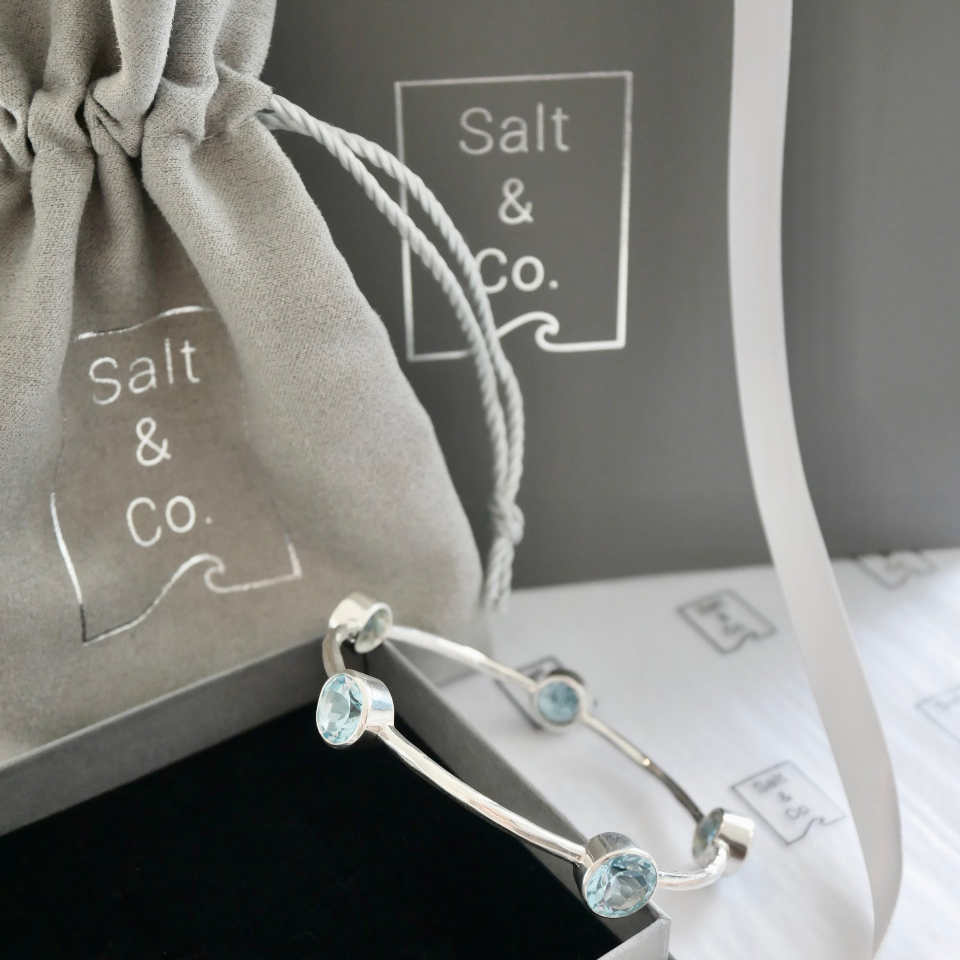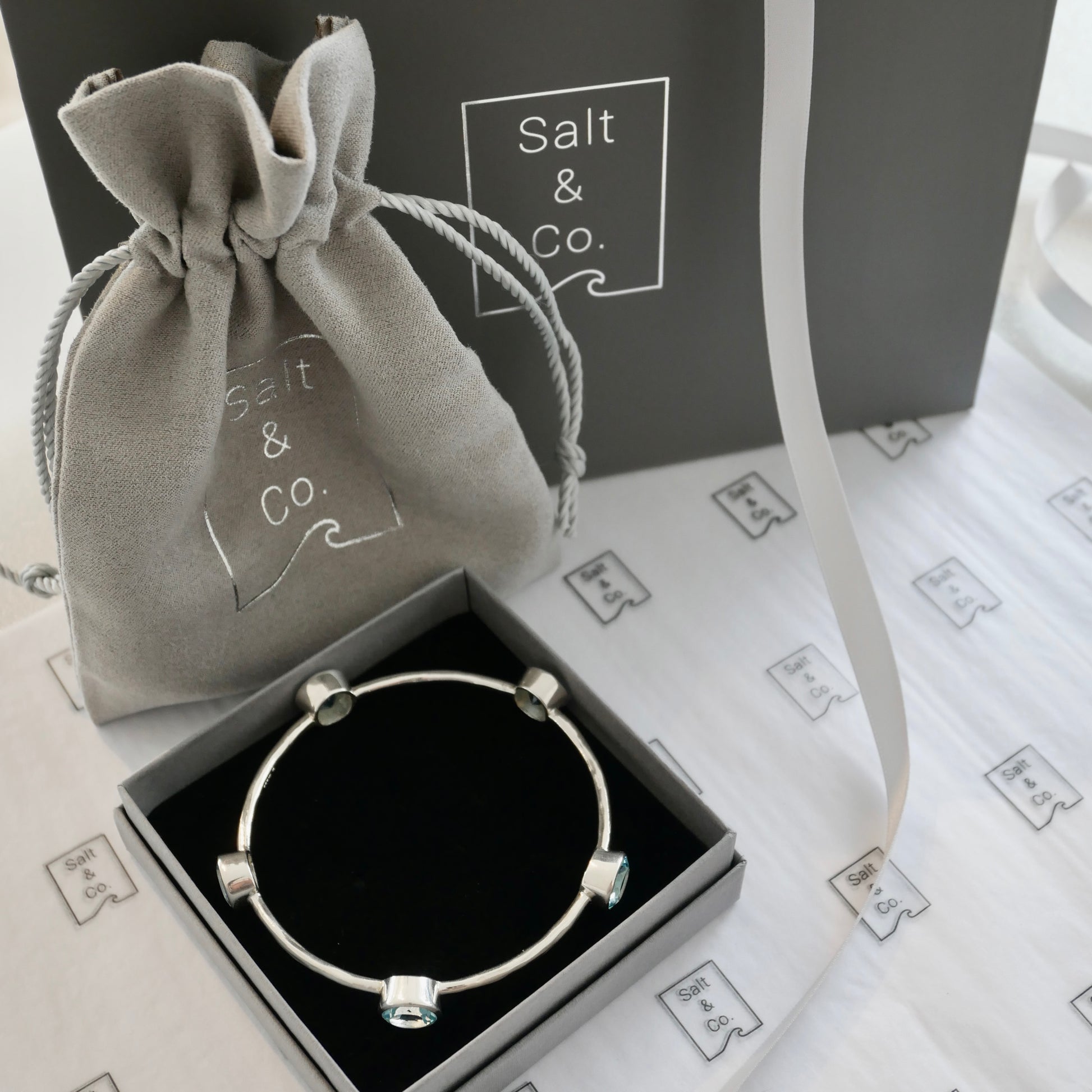 Your limited edition luxury bangle will arrive in a velvet lined Salt & Co. Box making it a beautiful gift or keepsake.