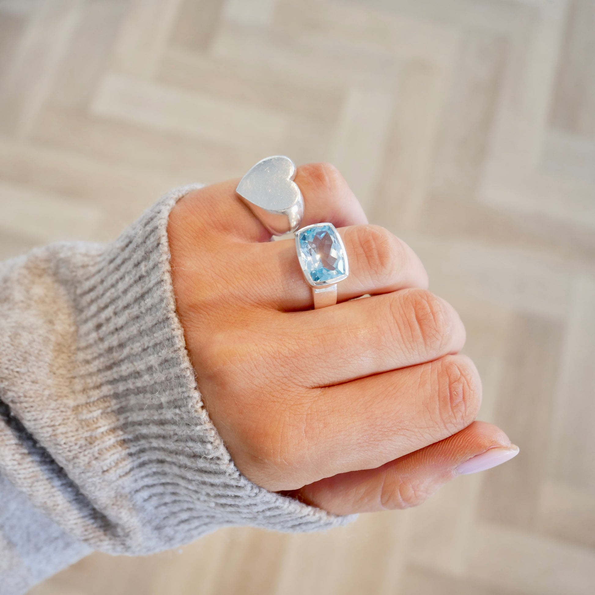 This ring features a faceted cut Blue Topaz gemstone, set in a silver bezel with a balanced band polished to a high shine, making it a timeless and eye-catching ring we are sure you will love!