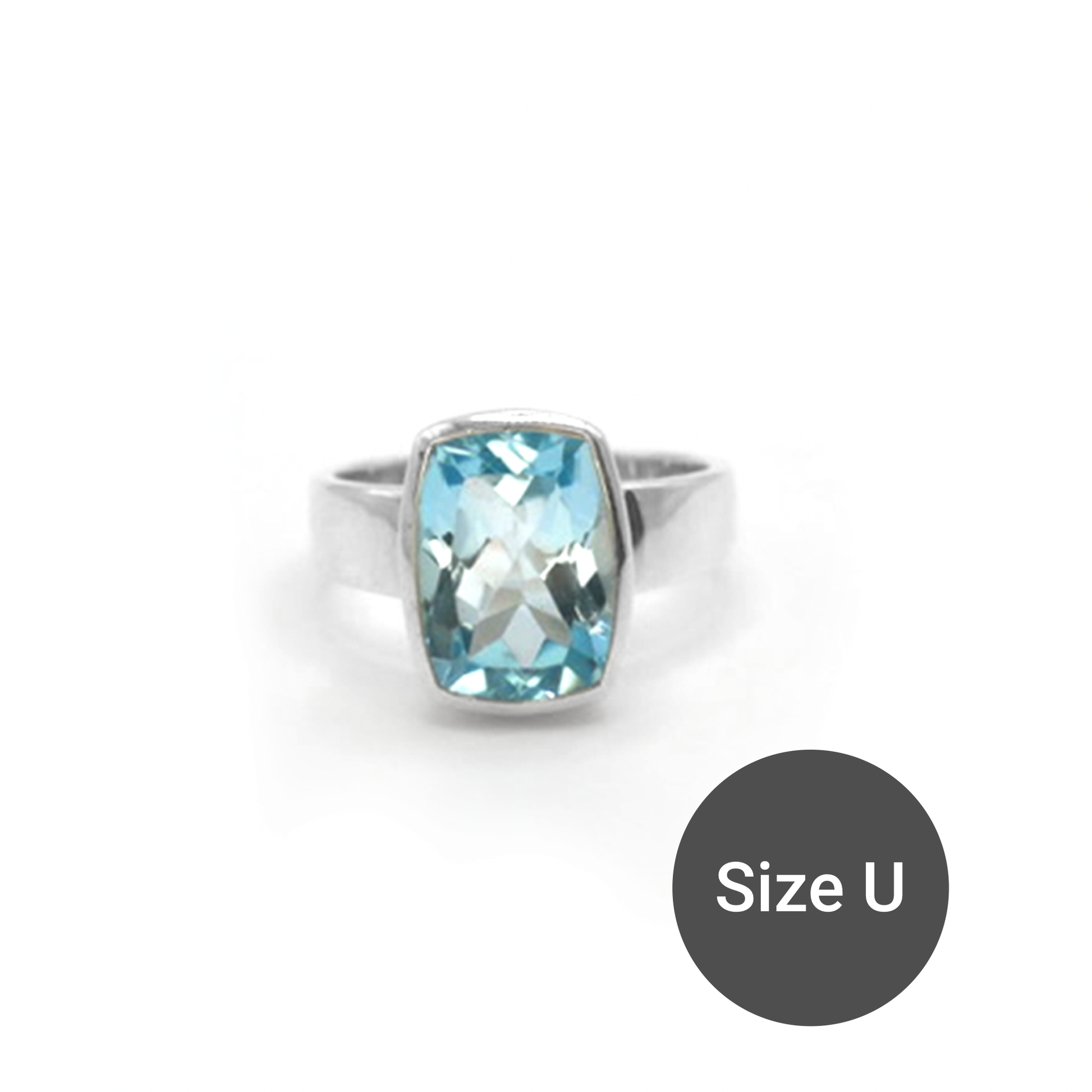 This ring features a faceted cut Blue Topaz stone, set in a silver bezel with a balanced band polished to a high shine, making it a timeless and eye-catching ring we are sure you will love!